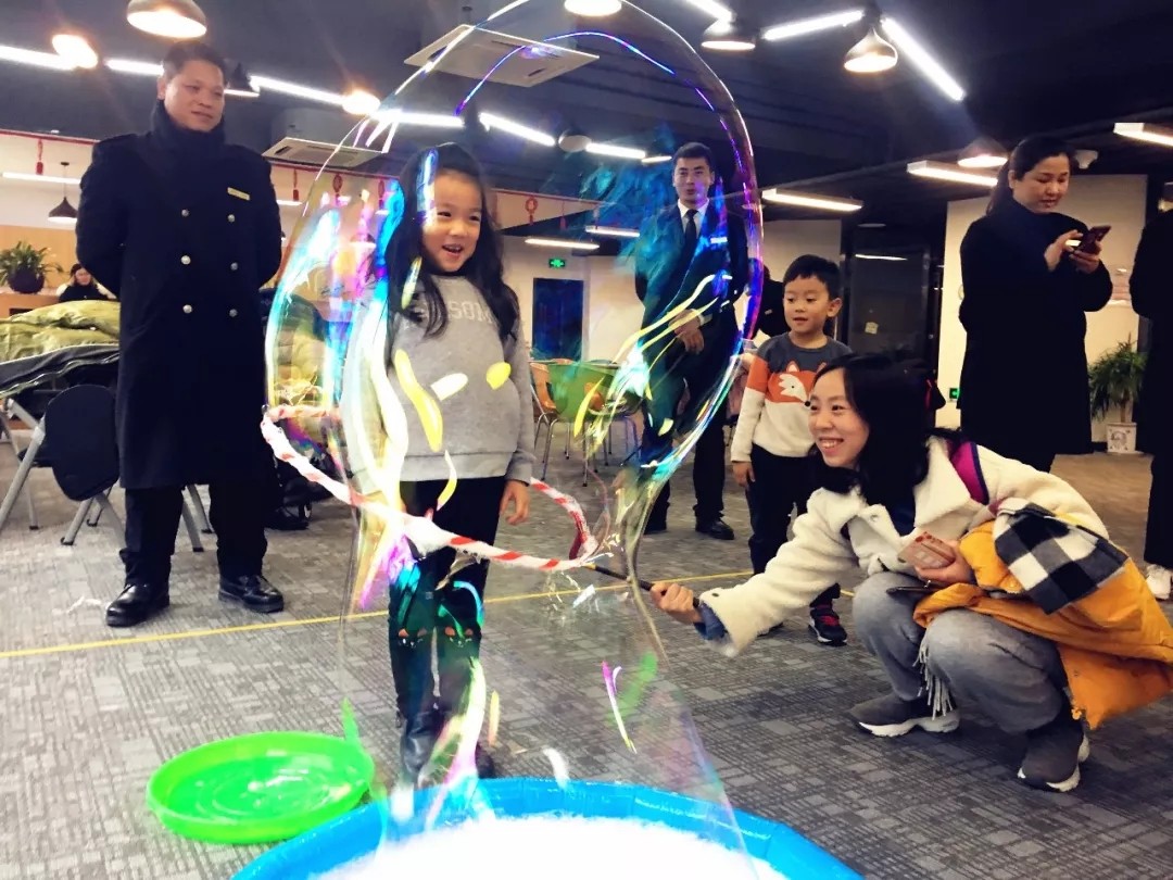 在服务园区-玉皇山南基金小镇,专为业主家庭准备的亲子游园会,让父母与孩子一起分享新年的欢乐,感受着邻里的温情。